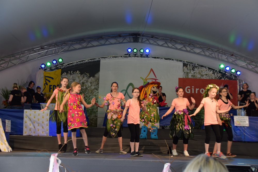 Mit einem schwungvollen Tanz eröffneten die jungen Tänzerinnen des TuS Glane auf der Giro live Bühne der LAGA den 2.Teil der Niedersächsischen Landesmeisterschaft der Floristen.