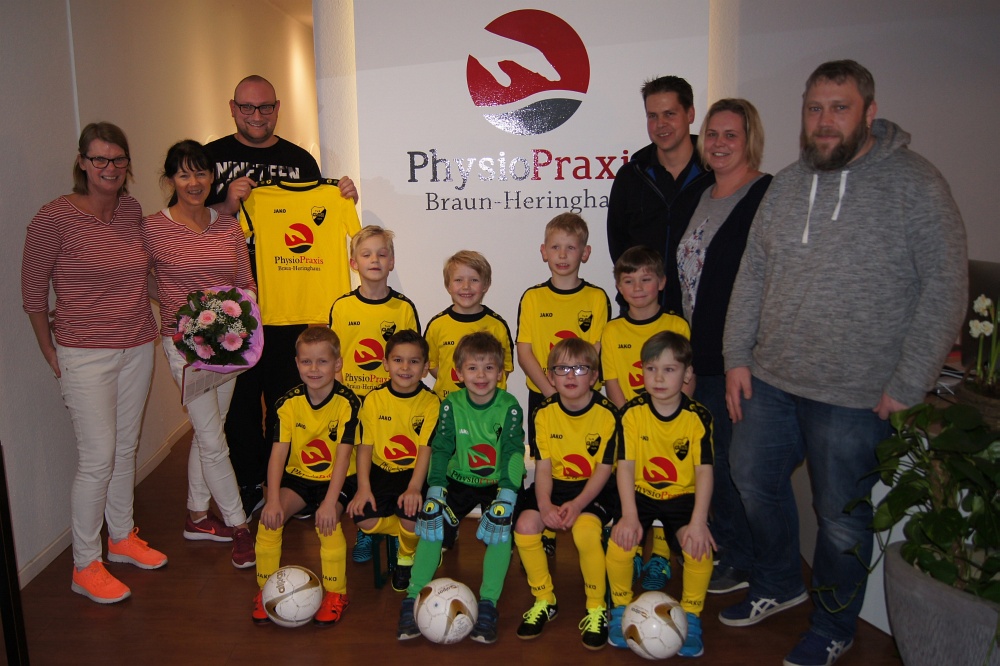 Die U7 des TuS Glane freut sich über einen neuen Trikotsatz, der freundlicherweise durch die Physiopraxis Braun-Heringhaus aus Glane gesponsert worden ist.