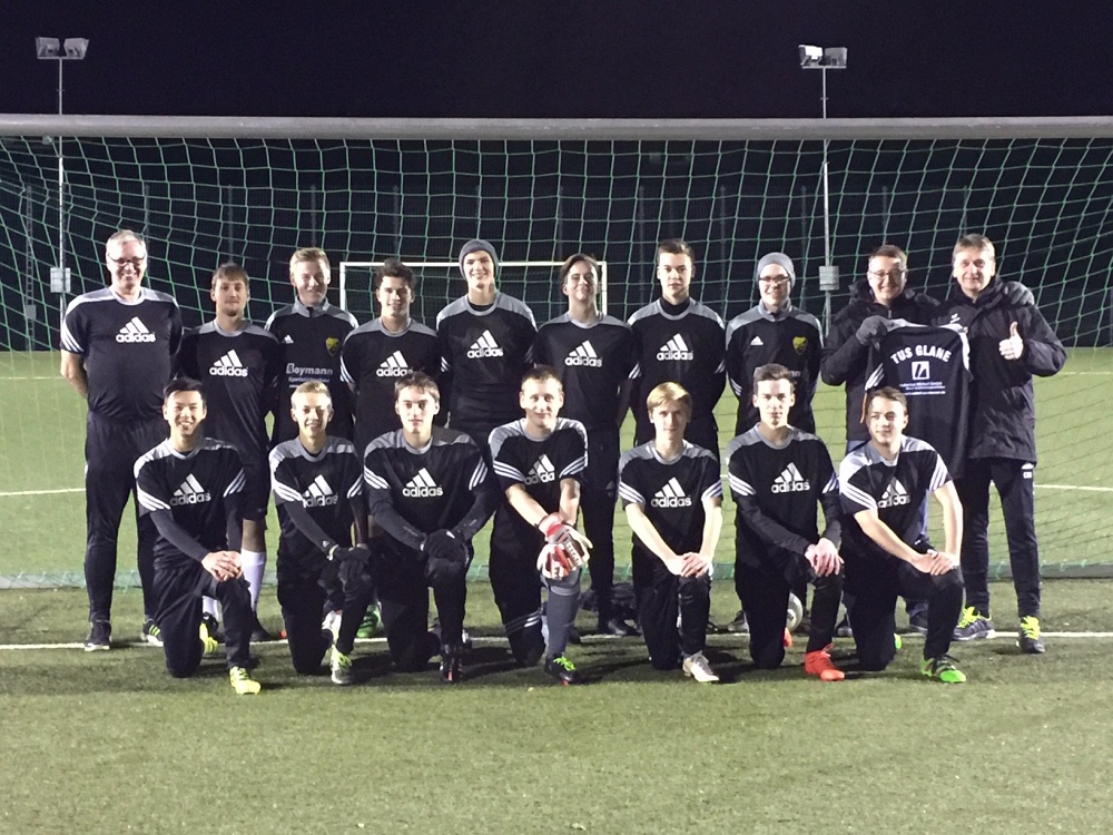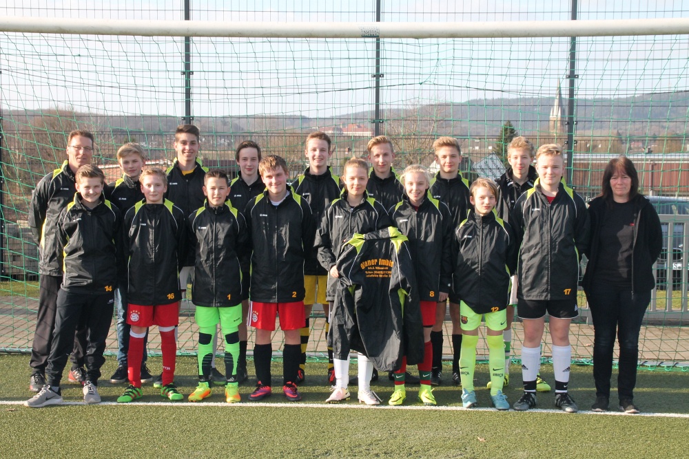 Die C 1- Jugend des TuS Glane sowie ihr Trainer Olaf Taschenmacher können mit neuen Regenjacken in die Rückrunde starten.