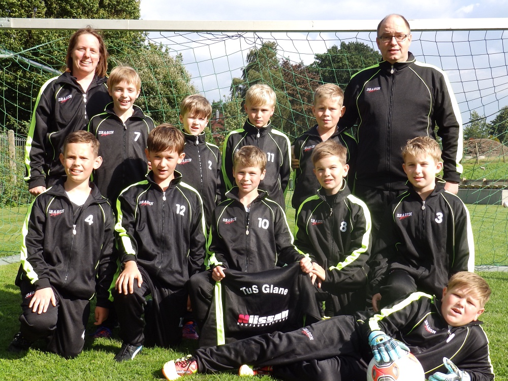 Mit freundlicher Unterstützung vom Baufachzentrum Nilsson aus Hilter konnte sich die E 5 -Jugend vom TuS Glane über neue Trainingsanzüge für die neue Saison freuen.