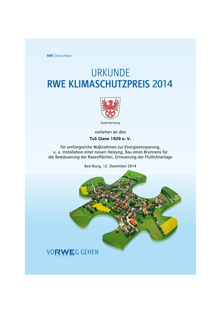 Bericht der Neuen Osnabrücker Zeitung vom 30. Dezember 2014 pm Bad Iburg. Über 1000 Euro dürfen sich die Sportler vom TuS Glane 1929 aktuell freuen. Hintergrund: Weil die Verantwortlichen des Vereins großen Wert darauf legen, dass an Energiesparmaßnahmen und ...