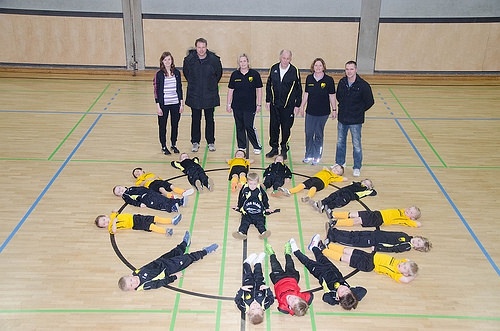 vl. Trainerin (FSJ) Svenja Menningen, Sponsor Markus Wiemann, Betreuerin Verena Winter, Trainer Franz Buchholz, Trainerin Ute Schmitz und Stellvertreter Jens Winter für die Firma Polymetall ...