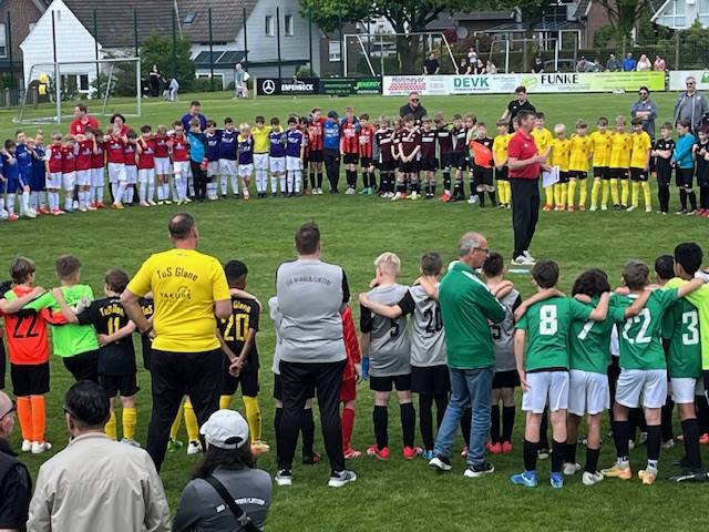 Mit diesen lobenden Zeilen gab der FC Wittlager Land 2022 e.V. auf seinen Instagram-Kanal die Stimmung aller 70 teilnehmenden Mannschaften treffend wieder. Hochzufrieden waren am Ende eines langen Turniertages die verantwortlichen Organisatoren um Fußballabteilungsleiter Olaf Taschenmacher mit dem Verlauf der Veranstaltung. Gemeinsam mit den Jugendtrainern wurde in mehreren vorbereitenden Sitzungen ein genauer Einsatzplan aufgestellt, der letztlich perfekt funktionierte. Mit dankenswerter Unterstützung der Kolpingjugend wurde unter Leitung von Christoph Buchholz der aufkommende Verkehr und die Parklatzbelegung erfolgreich geregelt. Genau wie die komplette C-Jugend mit ihren beiden Erfolgstrainern Jörg Schulte und Tekleweini Weldegebrial haben sich Spieler allen Mannschaften der Fußballabteilung an der Durchführung des Turnieres beteiligt. Einen besonderen Dank richtete Thomas Trentmann, Trainer der E 3 – Jugend des Vereins, an alle Eltern, die nicht nur selbst gebackenen Kuchen und Muffins gespendet , sondern im Dreischichtbetrieb die Versorgung der Spieler und Besucher übernommen haben. Dazu gehörte auch Fahrschulinhaber und Spielervater Yakub, der mit seinem Halal Food Angebot all diejenigen bediente, die keine Bratwurst essen. Wertvolle Unterstützung erhielt der TuS Glane von Jens Pax als Vertreter der Firma Kaffeeklatsch und der H. Höcherl GmbH. Die Spiele des Cups fanden gleichzeitig auf 7 Spielfeldern statt. Die Sieger der verschiedenen Gruppen haben sich für die Teilnahme auf Bezirksebene qualifiziert. Mit dabei ist auch eine vorn drei Glaner E-Jugend Mannschaften.